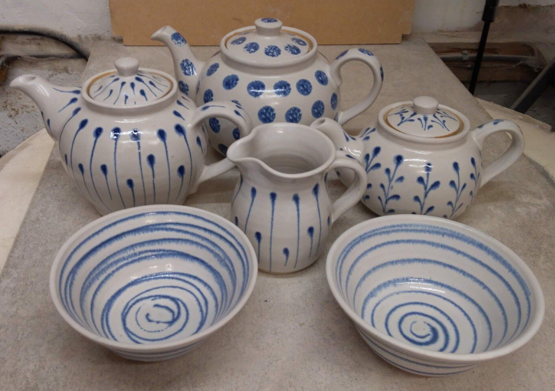 Barbara creates her pottery at Rodmer Clough Farm. She makes a range of kitchen and tableware in stoneware. It is all oven, microwave and dishwasher safe. All glazes are made in the pottery using natural materials and colouring oxides. There may be slight differences in colour depending upon minor variations in the glaze and firing temperatures.